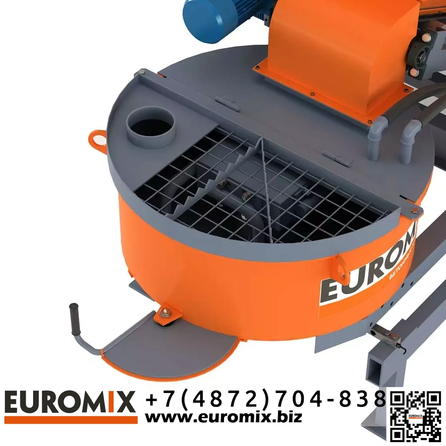 Для повышения удобства работы предусмотрена защитная решетка с разрывателем мешков на смесителе, что позволяет вручную подавать материалы. Это особенно удобно на небольших объектах или при ограниченных объемах производства.
