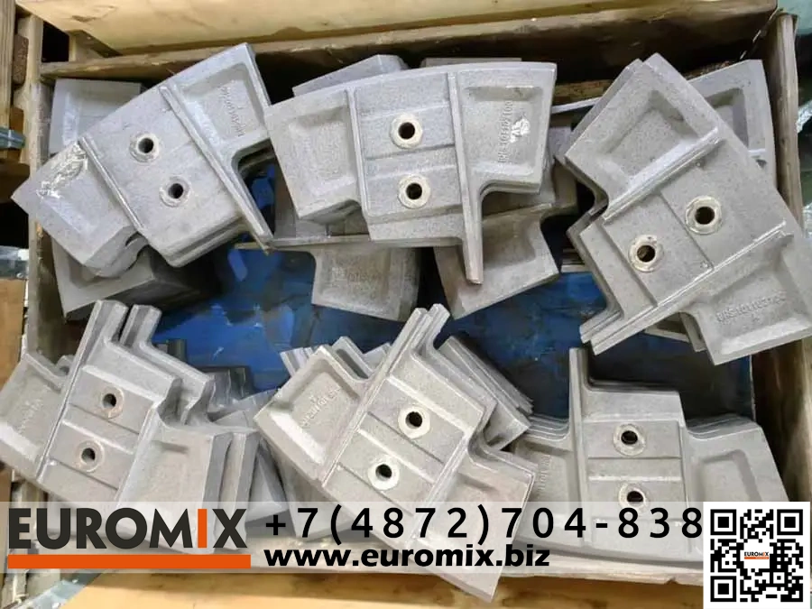 Лопатки двухвальных бетоносмесителей BHS OX предназначены для эффективного перемешивания бетонной смеси, обеспечивая равномерное распределение компонентов и повышенную износостойкость. Изделия выполнены из высококачественной стали, что гарантирует длительный срок службы и устойчивость к абразивным материалам. Лопатки обладают специальной формой, позволяющей минимизировать налипание смеси и снизить затраты на обслуживание.